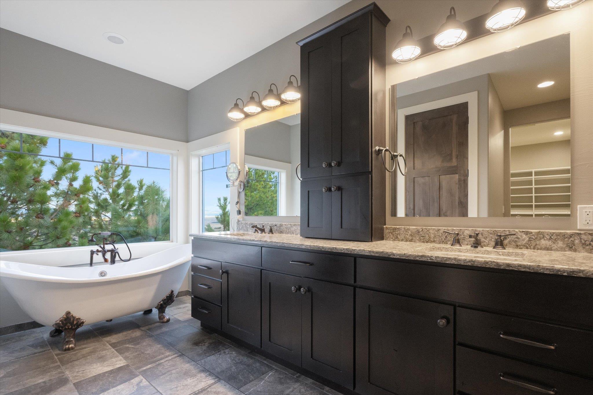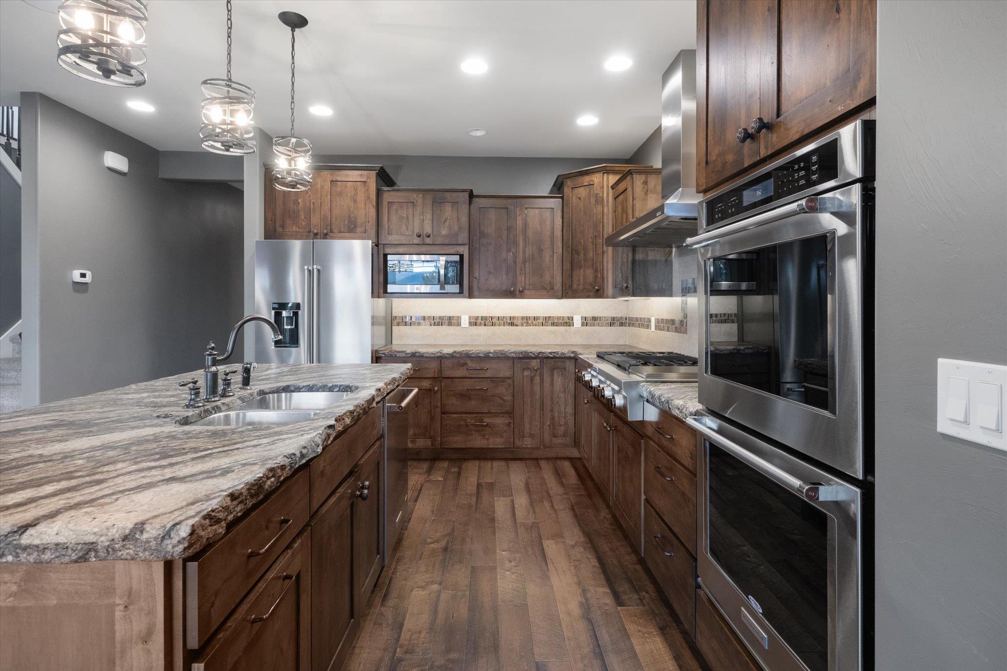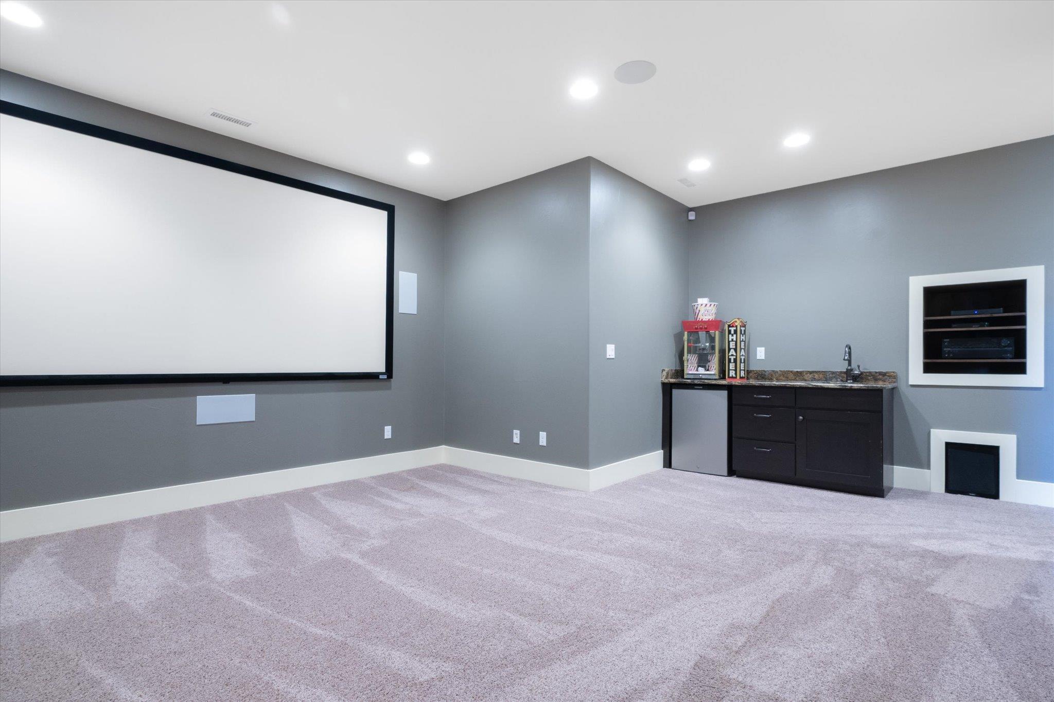 Nestled in the tranquil embrace of South Hills, this stunning 3-level residence boasts an expansive 3,474 sq ft of luxurious living space with unbeatable mountain views. This home is designed for relaxation and recreation with an 8-person cedar dry sauna inside the dedicated fitness room, making it easy to prioritize wellness without ever leaving home. Film lovers will adore the custom theater room, outfitted with a 121-inch screen and surround sound, for the ultimate movie experience. The heart of the home boasts a gourmet kitchen featuring full granite surfaces, a thoughtful walk-in pantry, and dual-sided natural gas fireplace. You'll find stunning hardwood floors throughout the main areas elevating the high end experience. Enjoy year-round comfort with a state-of-the-art 3-zone heating and A/C system, while modern amenities like stairwell nightlights, an integrated stereo system, and a stunning primary bedroom closet add to the home’s charm.